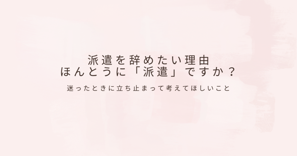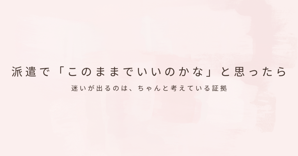 派遣で働いていると、ある程度時間が経ったころに、必ず一度は頭をよぎる言葉があります。「このままでいいのかな」 仕事が極端に嫌なわけでもない。人間関係も大きな問題はない。それでも、心のどこかで、今の働き方に対する迷いが消えない。派遣で働いて... -