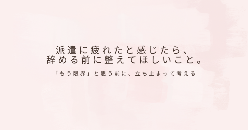 派遣に疲れたと感じたら|辞める前に整えてほしい「3つのこと」