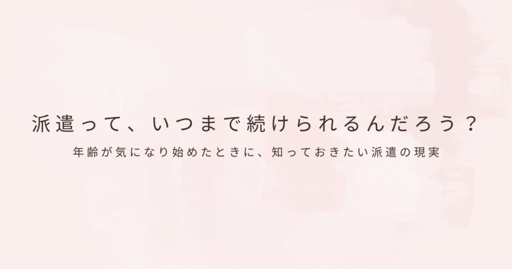 派遣で働いていると、あるタイミングで必ず浮かんでくる疑問があります。「派遣って、いつまで働けるんだろう」「この年齢でも続けていけるのかな」。今すぐ仕事がなくなるわけではないのに、ふと将来が不安になる瞬間。これは派遣社員にとって、とても自... -