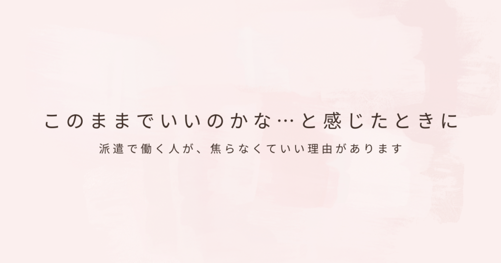 派遣で働いていると、特に大きな不満があるわけでもないのに、「このままでいいのかな」と急に不安になることがあります。 仕事はある、生活も回っている、職場環境も悪くない。それなのに、心のどこかが落ち着かない。 この感覚に覚えがある人は少なくあ... -