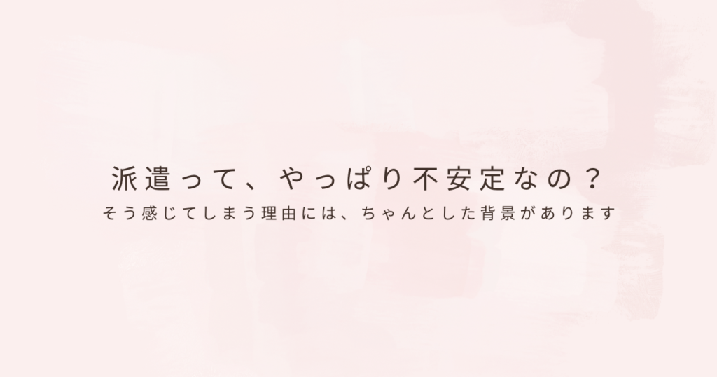 派遣で働いていると、「この働き方って安定していないよね」と言われたり、自分でもそう感じてしまったりすることがあります。仕事は続いている、生活も回っている、それでもどこか落ち着かない。 その感覚は、派遣という言葉が持つイメージや、周囲の価値... -