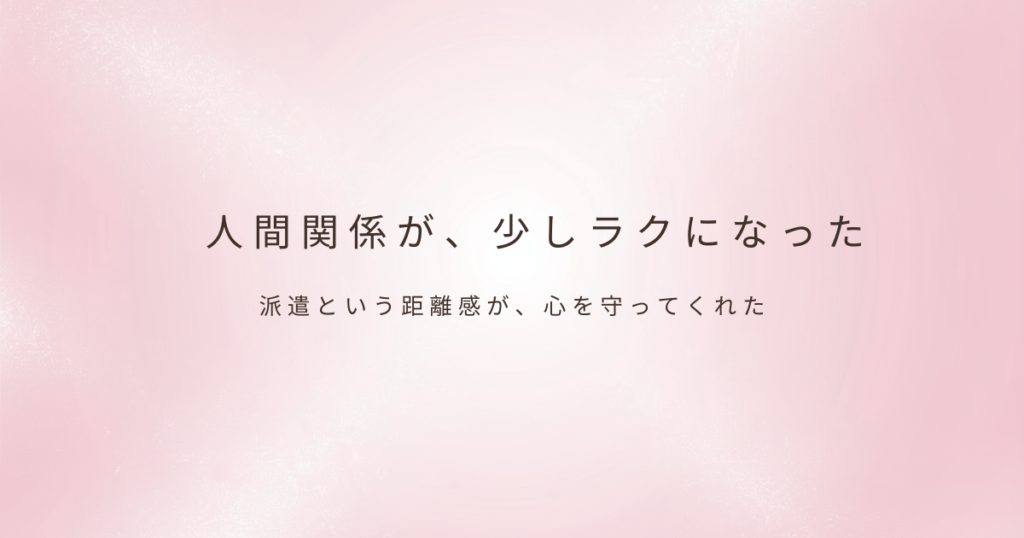 「職場の人間関係がしんどい」これは、働く人の多くが一度は感じる悩みです。 派閥、評価、上司との相性、同僚との温度差。仕事そのものよりも、人間関係で消耗してしまうことも少なくありません。 けれど中には、こう感じる人もいます。「派遣になってか... -