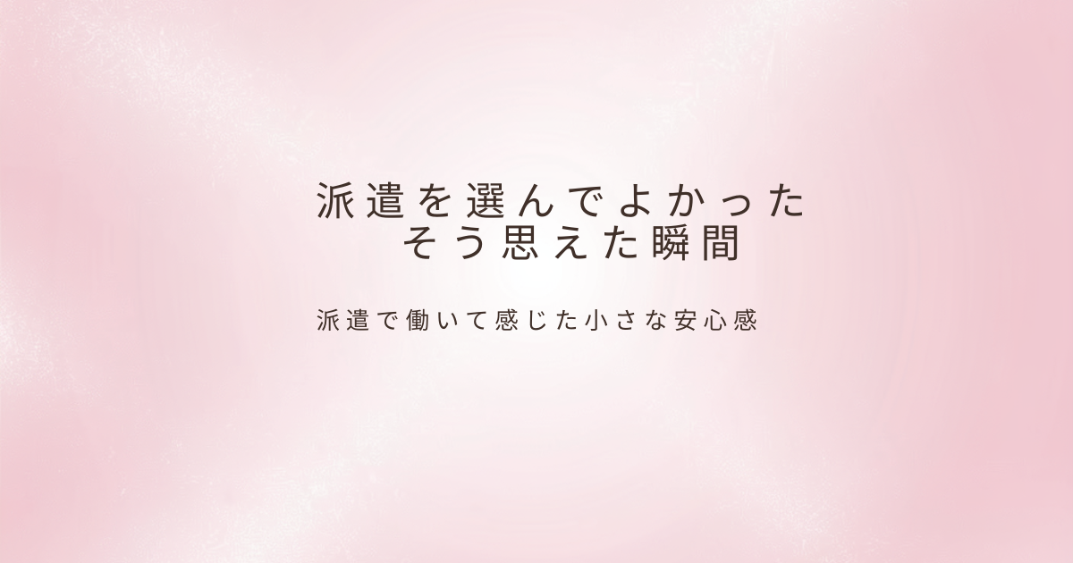 「派遣」という働き方を選んでよかったと思えた瞬間