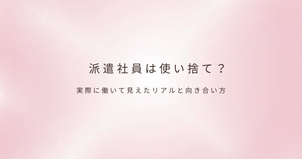 「派遣社員は使い捨て」そんな言葉を一度は目にしたことがあるかもしれません。 ネットやSNSでは、ネガティブな意見が目立ちやすく、これから派遣で働こうとしている人ほど、不安に感じてしまうものです。 実際に働いてみるとどうなのか。本当に使い捨ての... -