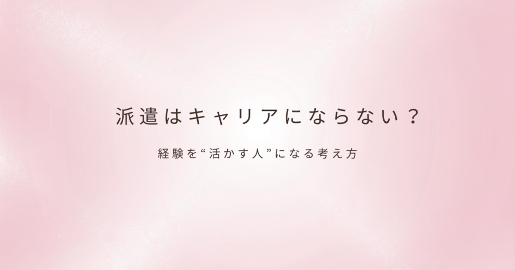 「派遣はキャリアにならない」そんな言葉を聞いて、不安になったことはありませんか。 これから派遣で働こうとしている人や、すでに働いている人にとって、この言葉は少し重く感じるものです。「このままでいいのか」「将来につながるのか」と、立ち止まっ... -