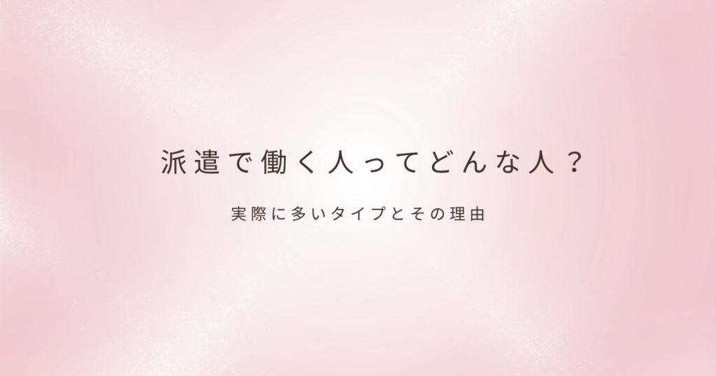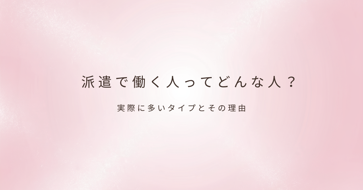 「派遣で働く人って、どんな人が多いんだろう」これから派遣を考えていると、そんな疑問を持つこともあると思います。 なんとなく「特別な事情がある人が選ぶ働き方なのでは」と感じてしまうこともありますが、実際に現場に入ってみると、そのイメージは少... -
