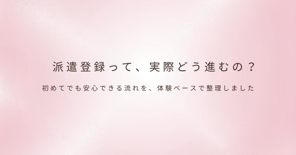 「派遣登録って、実際どんな流れなの?」初めて派遣で働こうとすると、ここが一番不安になるかもしれません。 ネットで調べると「簡単3ステップ」などと書かれていますが、実際に体験してみないと分からない空気感や、心の動きがあります。 登録って面接な...