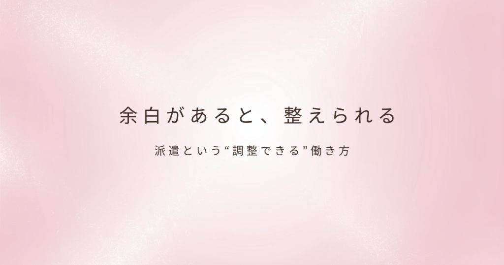 派遣という“余白のある働き方” 働いているはずなのに、なぜかずっと息苦しい。 仕事はこなしている。責任も果たしている。でも、気持ちに余裕がない。 常に何かに追われている感覚。休んでいるはずなのに、頭の中は仕事のまま。 そんな状態を経験したこと...