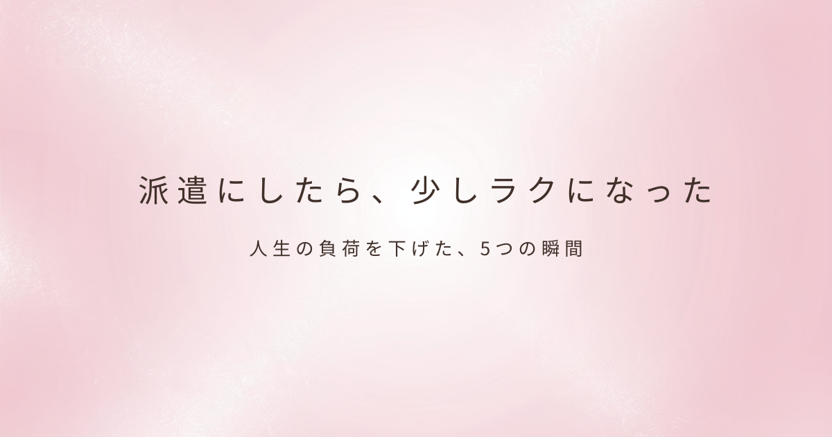 「派遣って、逃げじゃないの?」そんな言葉を、どこかで聞いたことがあるかもしれません。 正社員から外れることへの不安。安定を手放す怖さ。周囲の目。 けれど本当に派遣は“逃げ”なのでしょうか。 この記事では、派遣という働き方を「立て直し」という視...
