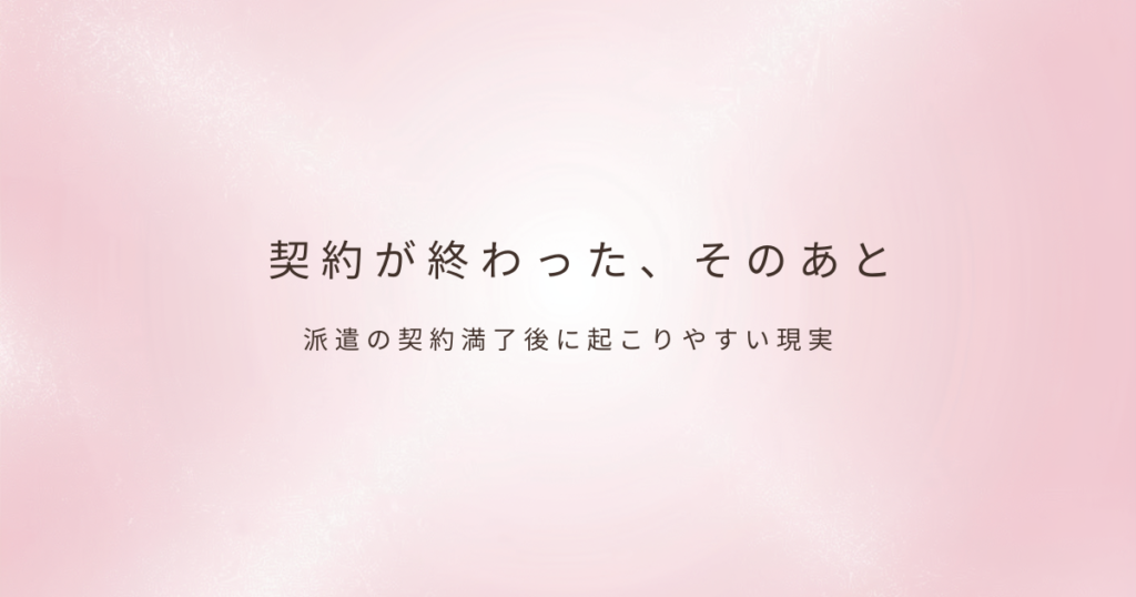 派遣の仕事は、必ず「契約満了」という終わりがやってきます。 更新せずに満了を迎えた人もいれば、次が決まらないまま契約が終わる人もいるでしょう。 そのとき多くの人が感じるのが、「このあと、どうなるんだろう?」という不安です。派遣の契約満了後...